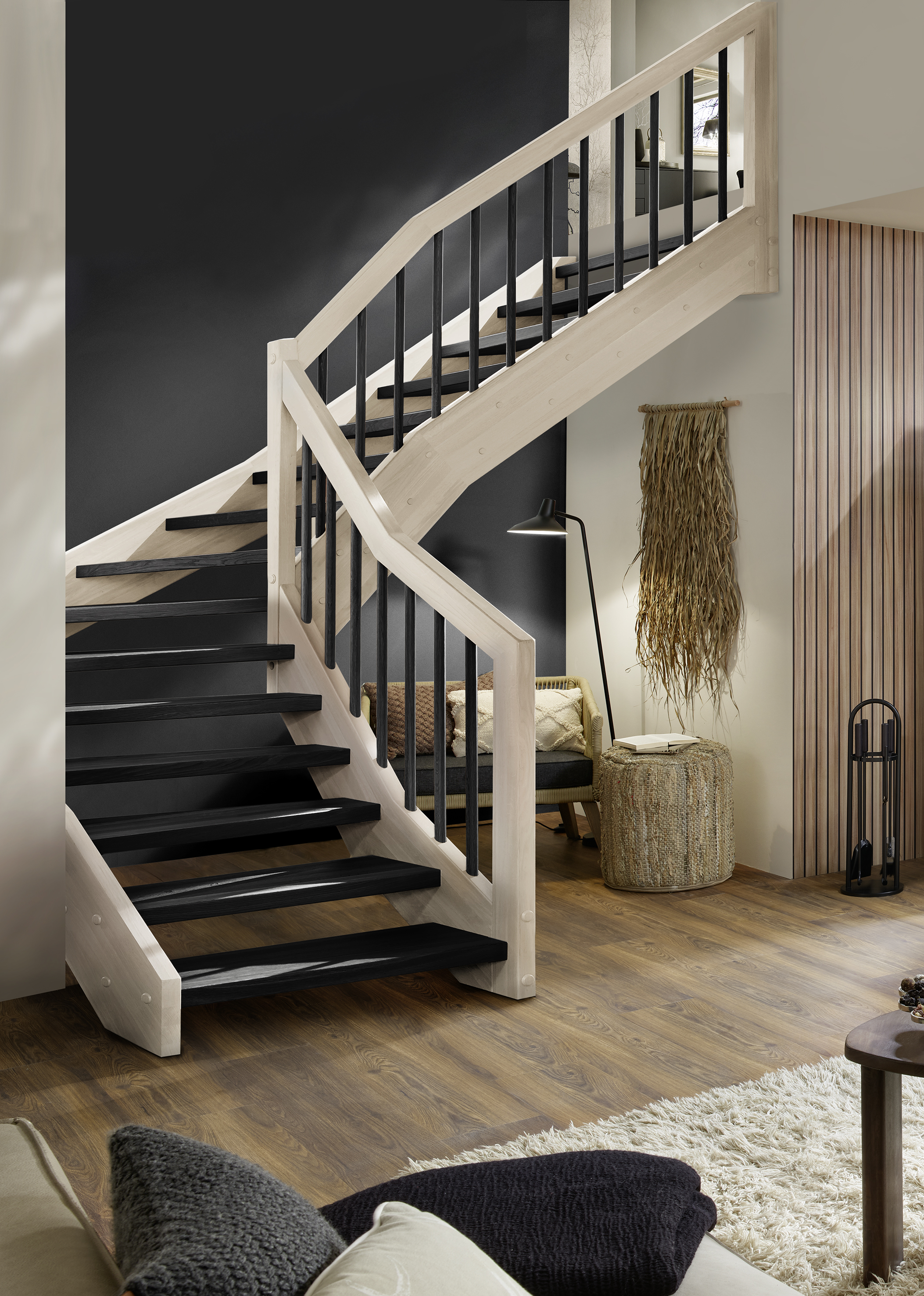 • eine klassische Holzwangentreppe